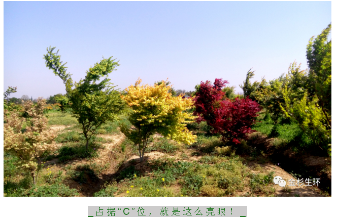 傳統(tǒng)色塊,無非綠,紅,黃三種顏色,“金禧”從萌芽到葉片成熟綻放,會經(jīng)歷多個變色階段,所以色塊隨著新葉的生長,會呈現(xiàn)多種色彩效果,并且層次遞進是其他任何色塊苗木無法比擬的。
